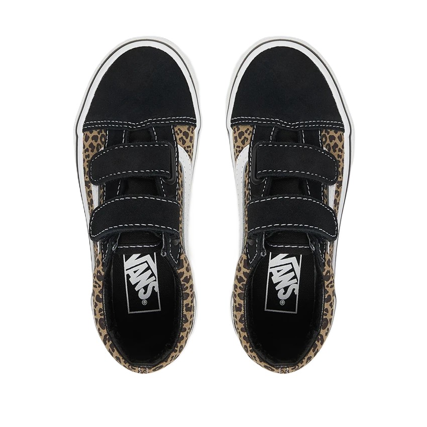VANS KIDS OLD SKOOL V SHOES BLACK LEOPARD