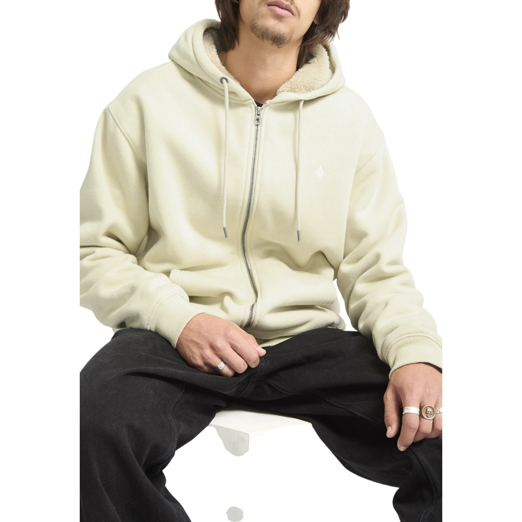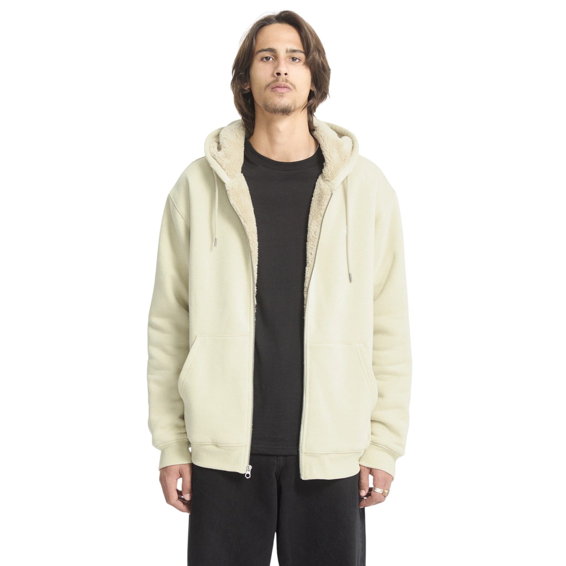 VOLCOM SINGLE STONE SHERPA LINED ZIP HOODIE LIGHT BEIGE